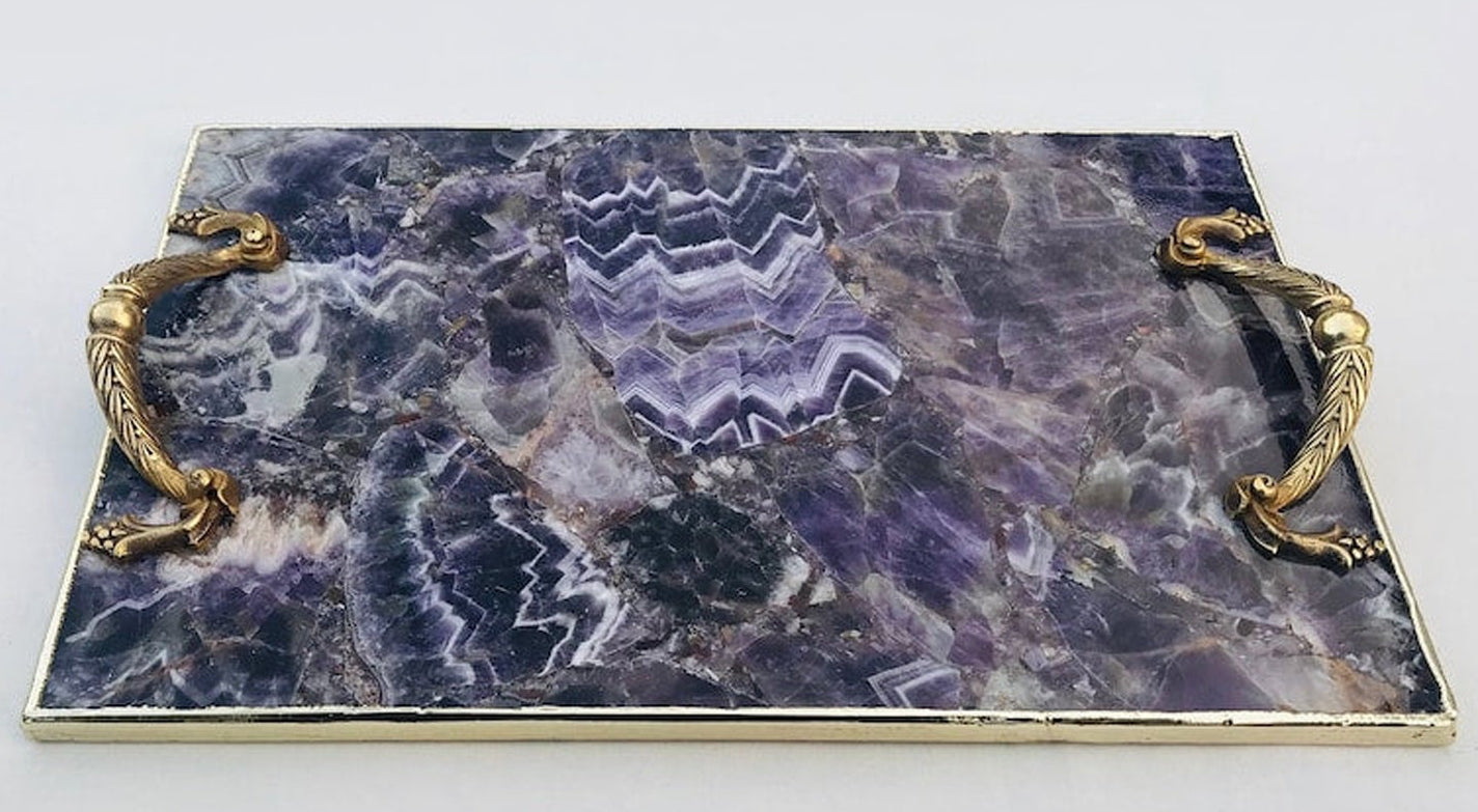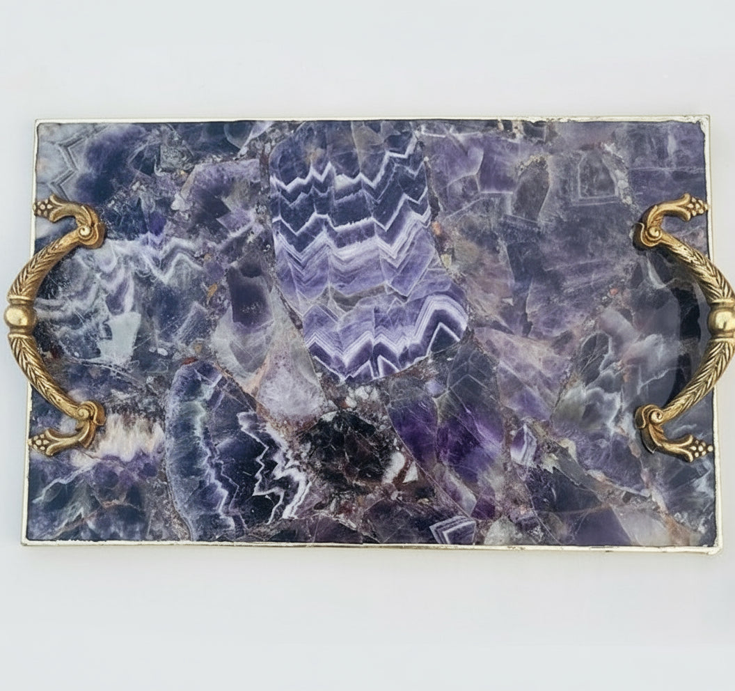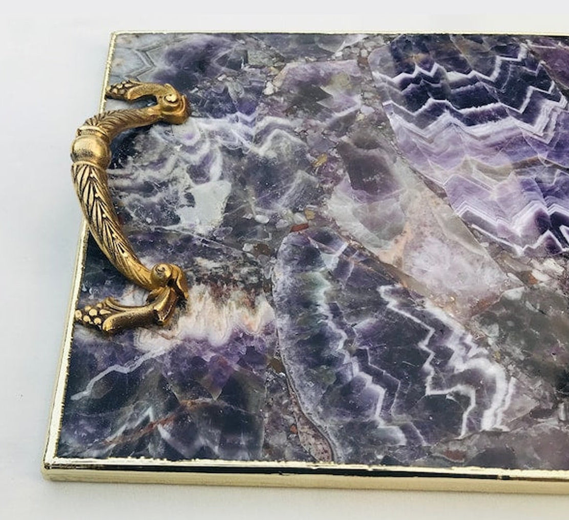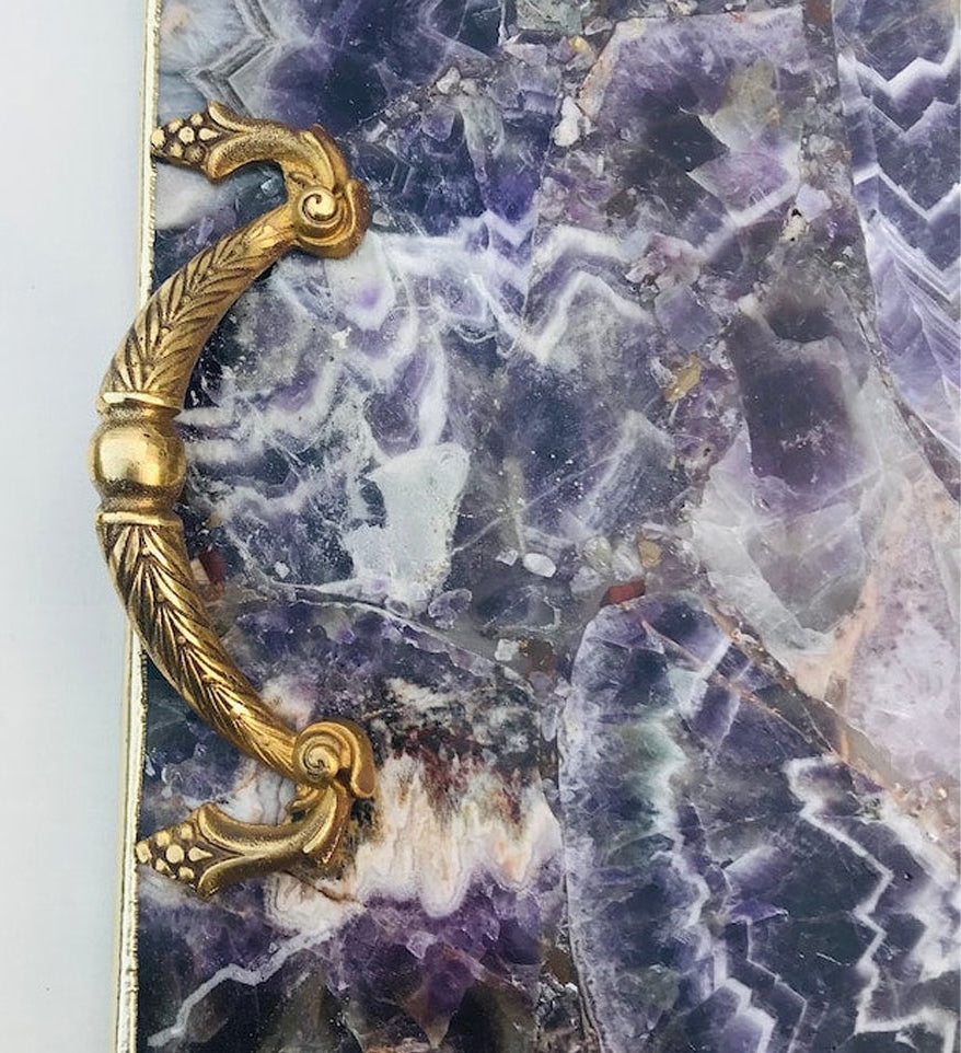 Deska do Serwowania z Ametystowego Agatu z Uchwytami z Mosiądzu