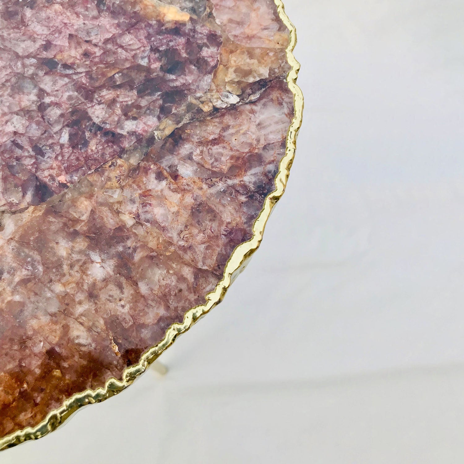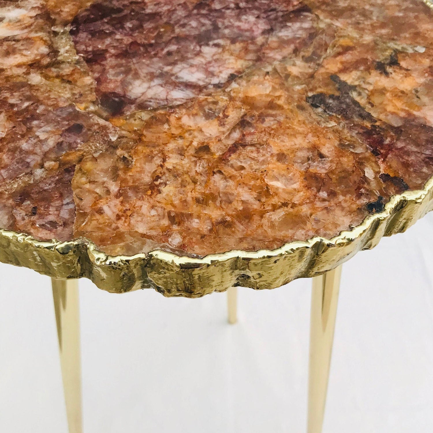 Wprowadź do swojego salonu odrobinę luksusu i naturalnego piękna dzięki temu wyrafinowanemu, ręcznie wykonanemu stolikowi kawowemu. Każdy stolik to unikalne połączenie solidnego, mosiężnego osprzętu z naturalnym blatem, co gwarantuje jego niepowtarzalny charakter.