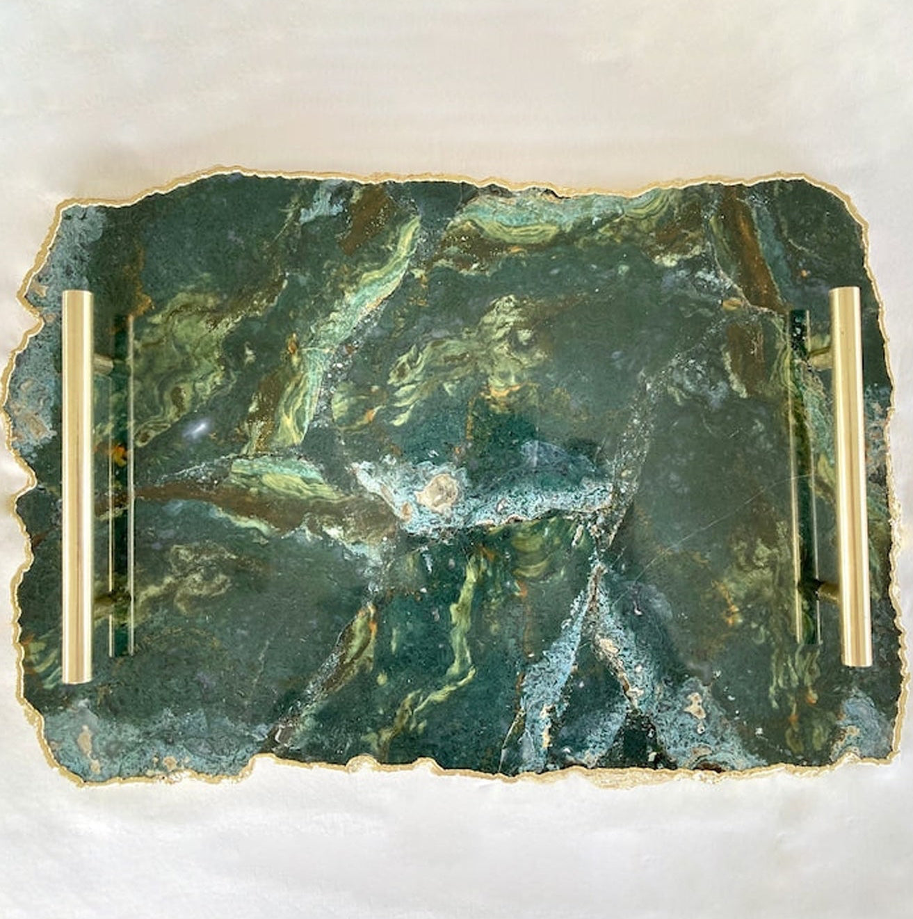 Ekskluzywna Taca do Serwowania z Naturalnego Agatu z Mosiężnymi Uchwytami