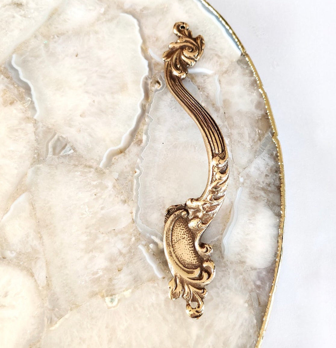 - Materiał: Naturalny agat, mosiężne uchwyty