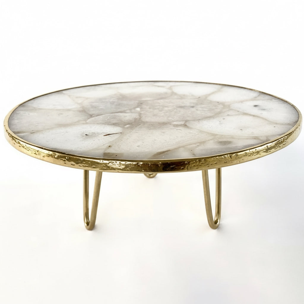 Elegancki Stojak na Ciasto / Patera z Białego Kryształowego Agatu