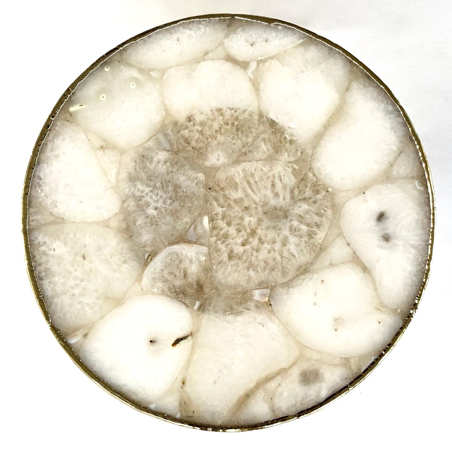 - Trwałe Złote Wykończenie: Krawędzie agatu zostały poddane zaawansowanemu procesowi galwanizacji. W przeciwieństwie do złocenia płatkowego, nasza metoda zapewnia niezrównaną trwałość i odporność na ścieranie.